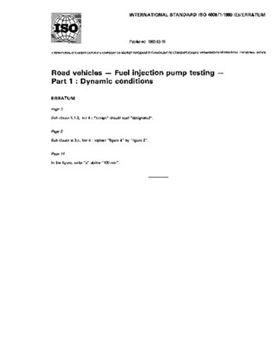 ISO 4008-1:1980, Road vehicles - Fuel injection pump testing - Part 1 : Dynamic conditions by ISO TC 22/SC 7 PDF, ePub eBook D0wnl0ad